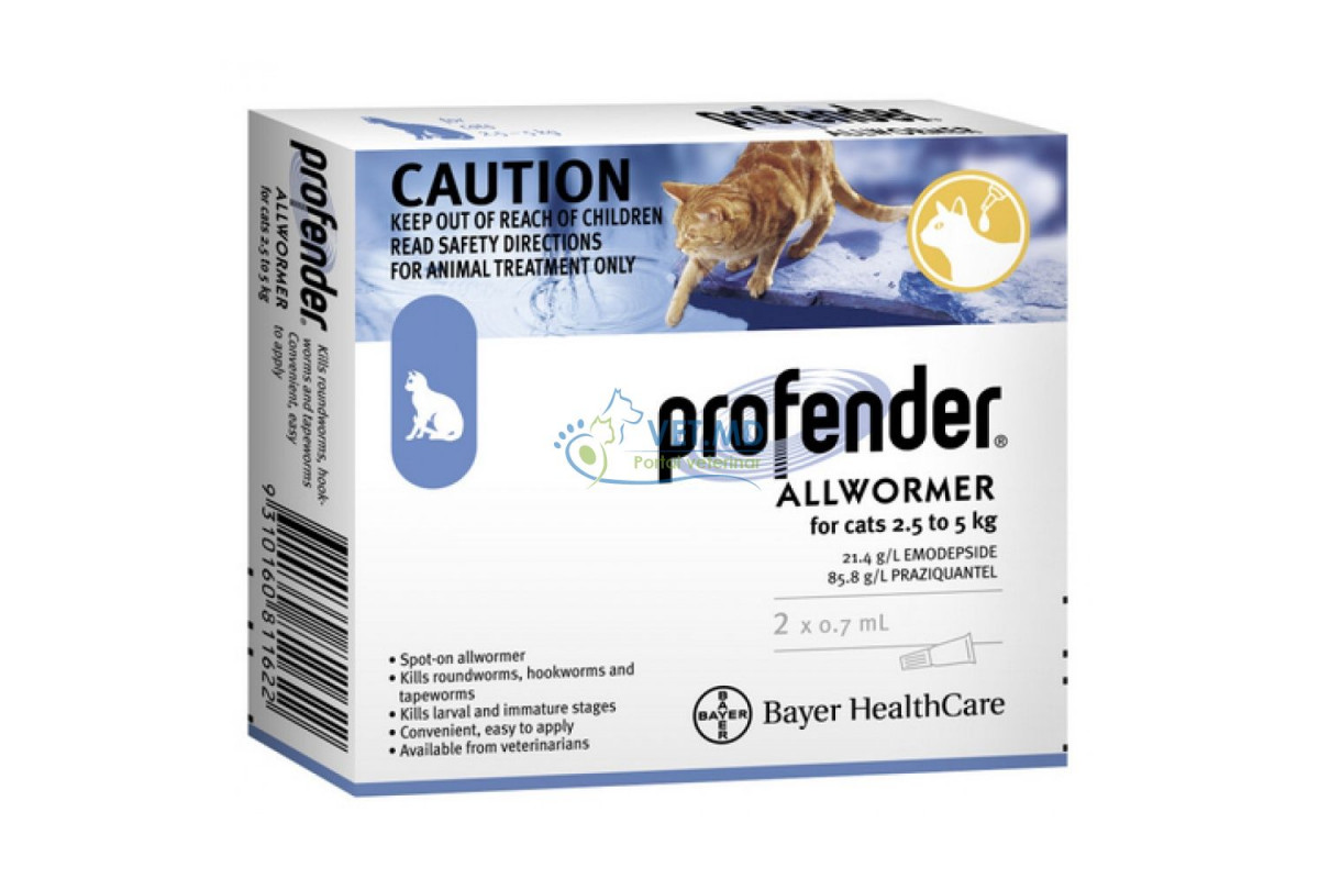 Профендер Спот-он показан для использования у кошек, страдающих или подверженных риску смешанных паразитарных инвазий, вызванных взрослыми и личиночными стадиями нематод видов Toxocara cati, Toxascaris leonina и Ancylostoma tubeeforme, а также против взрослых стадий видов цестод. Dipylidium caninum, Taenia taeniaeformis и Echinococcus multilocularis. Применение каждые 3 месяца защищает кошек от заражения этими паразитами.