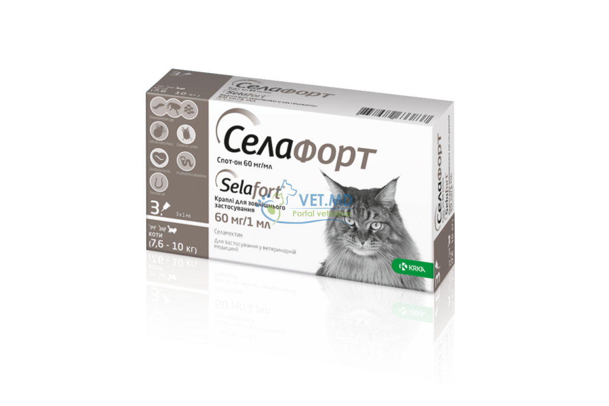 Селафорт (селамектин) 60 мг спот-он для кошек 7,6-10 кг ,1 пипеткa