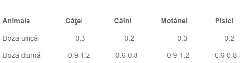 При лечении вирусных инфекций домашним животным Фоспренил назначают в течение 5-7 дней в дозе (см3 / кг), указанной в таблице: