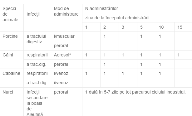 В случае неспецифической профилактики заболеваний и снижения летальности назначают в дозе 0,05 мл / кг по схеме в табл.