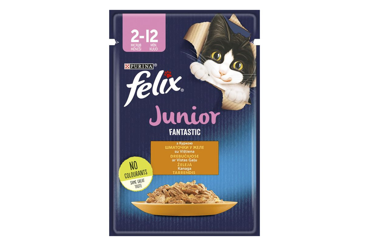 Purina Felix (Феликс) Fantastic Junior, курица в желе — полнорационный консервированный корм для котят.