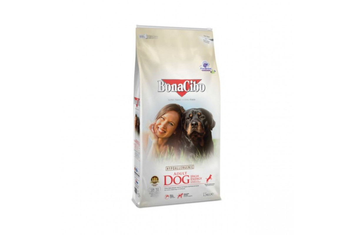 BonaCibo Adult Dog High Energy удовлетворяет повышенные энергетические и пищевые потребности активных собак в связи с длительными физическими упражнениями и работой.