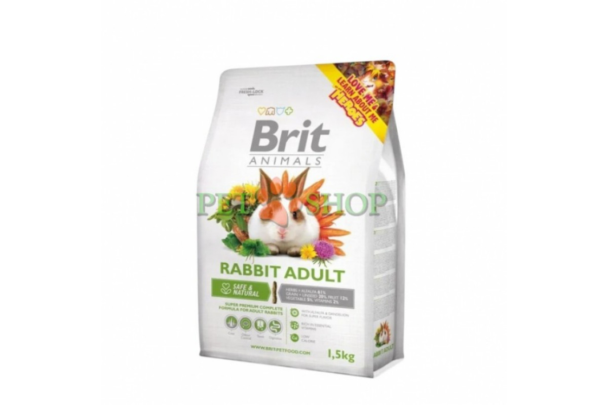 Brit Animals Rabbit Adult - полнорационный корм супер премиум класса для взрослых кроликов (от 20 недель до 4 лет). {csvnc}Код: {csvnc}17699 Бренды: {csvnc}Brit Pet food Вид питомца: {csvnc} Грызуны Вес упаковки: {csvnc}1.5 KG Размер питомца: {csvnc}Для всех пород Класс товара: {csvnc}Супер-Премиум Возраст питомца: {csvnc}Взрослые