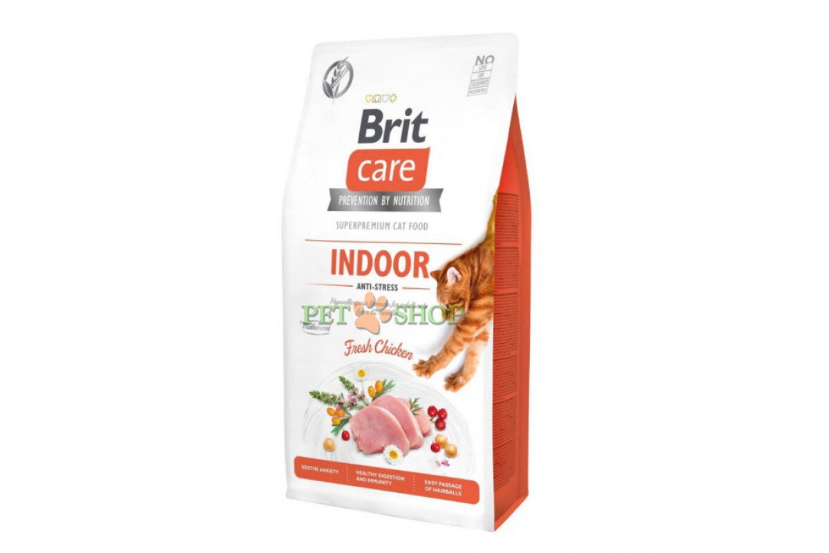 Brit Care Cat Indoor Anti-stress – это супер-премиальный беззерновой гипоаллергенный корм для кошек, живущих в помещении.