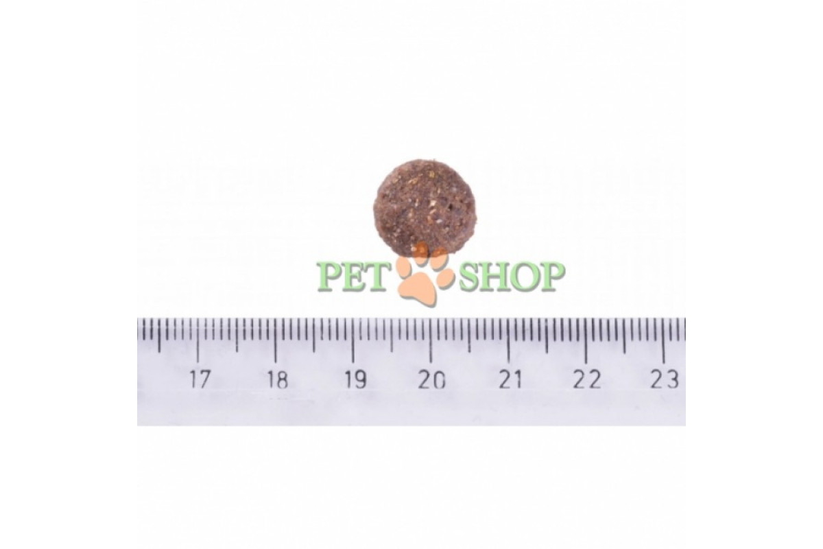 сырой протеин 26,0%, сырой жир 16,0%, влага 10,0%, сырая зола 7,2%, сырая клетчатка 2,5%, кальций 1,4%, фосфор 1,0%, натрий 0,4%, омега-3 жирные кислоты 0,5%, омега-6 жирные кислоты 1,9 %, ЭПК (20:5 н-3) 0,05%, ДГК (22:6 н-3) 0,1%.