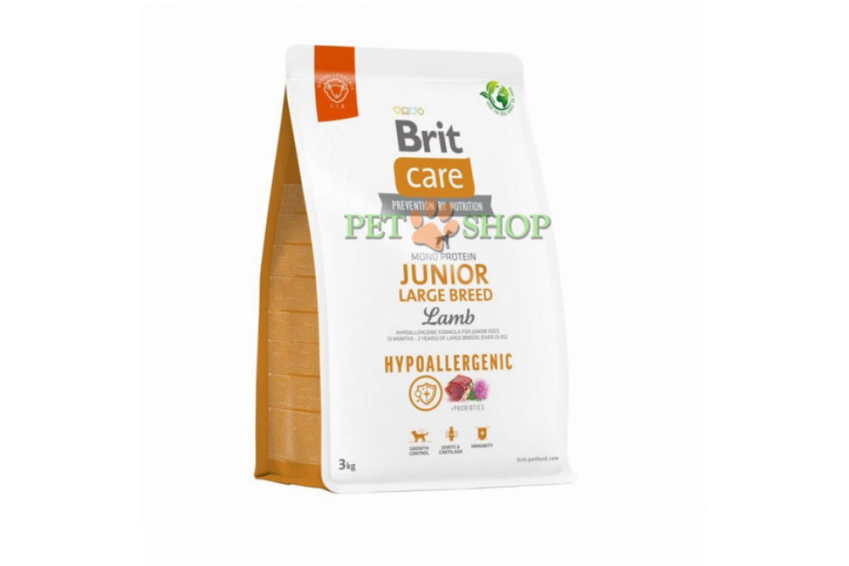 Brit Care Junior Large Breed Lamb & Rice 3 kg - Гипоаллергеннная Формула с Ягненком и рисом для молодых собак (3 месяца - 2 года) крупных пород более 25 кг