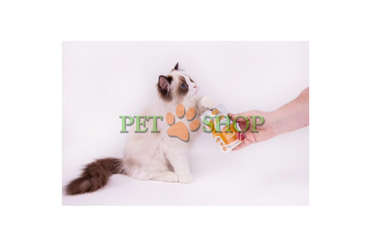 Суп имеет жидкую консистенцию, дополненную аппетитными кусочками мяса утки и курятины, которые придутся по вкусу даже привередливым любимцам, а высокое содержание воды помогает удовлетворить потребность кошки в необходимом уровне жидкости в ее рационе