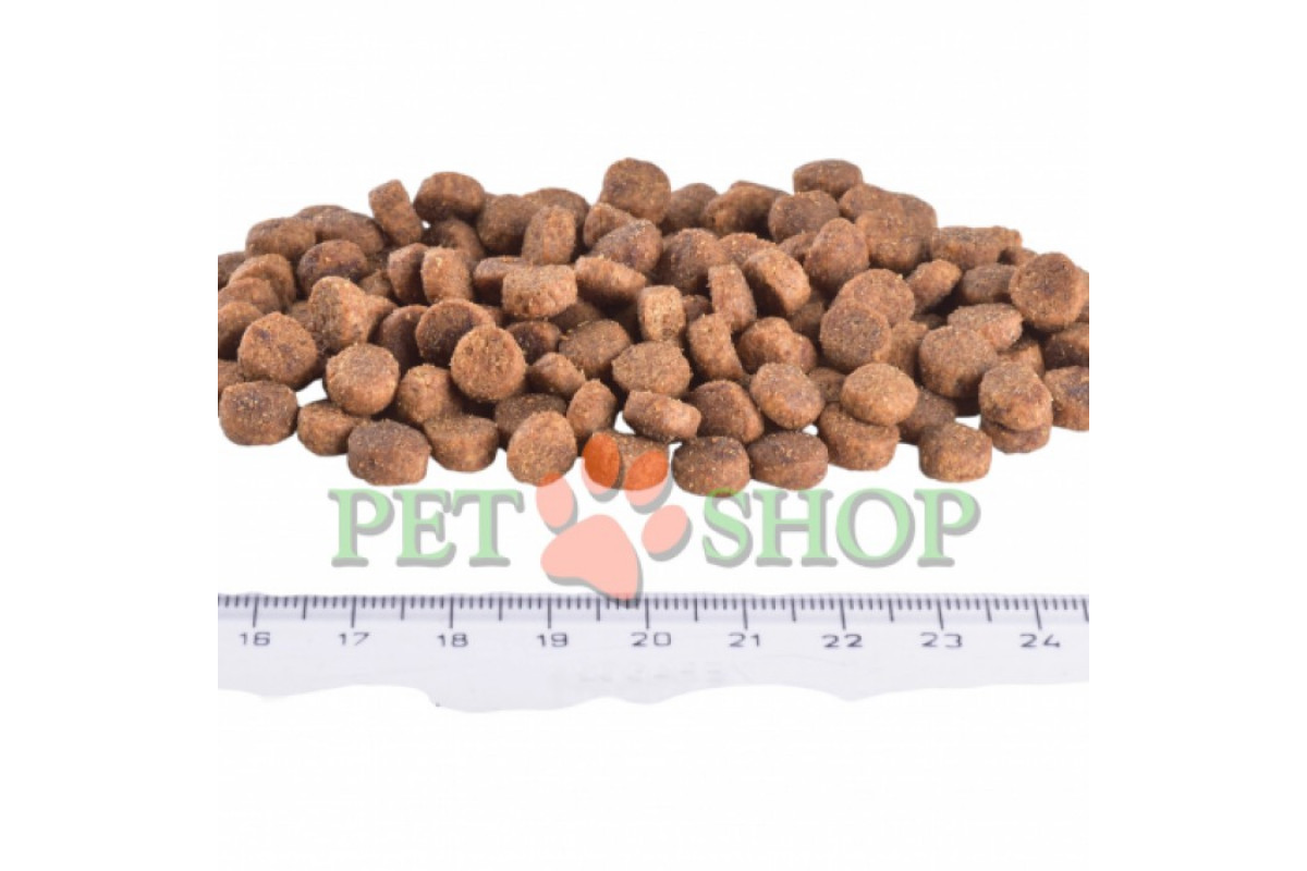 сырой белок 46,0%, содержание жира 13,0%, сырая клетчатка 3,0%, сырая зола 7,7%, влага 10%, омега-3 0,55%, омега-6 1,6%, кальций 1,3%, фосфор 1,0%, натрий 0,4%, магний 0,07%, крахмал 15%, общее количество сахара 0,8%.