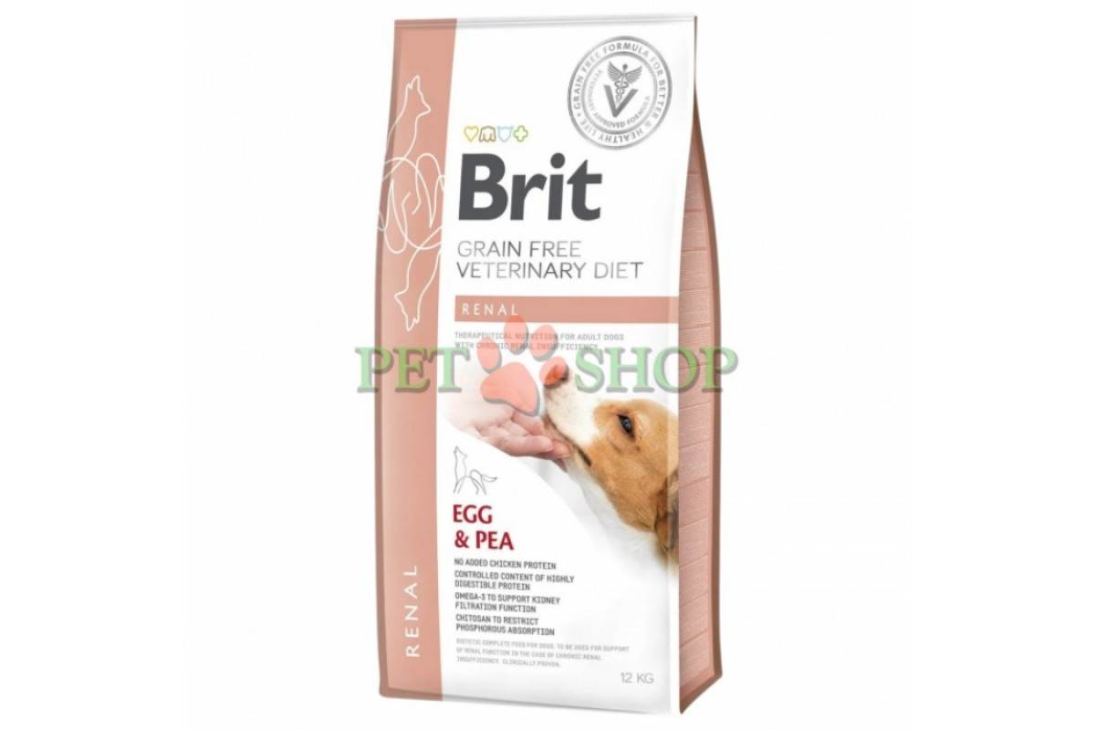 Brit Vet Dog Grain Free Renal – беззерновая диета при хронической почечной недостаточности с яйцами, горохом и гречихой. Диетический полнорационный сухой корм для собак – поддержка функции почек при хронической почечной недостаточности.
