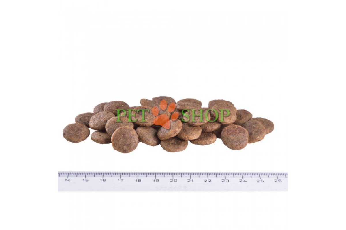 сырой белок 19,0%, содержание жира 16,0%, сырая клетчатка 2,8%, сырая зола 6,8%, влага 10%, жирные кислоты омега-3 0,8%, жирные кислоты омега-6 2,3%, кальций 0,6%, фосфор 0,4%, натрий 1,2%, магний 0,04%, калий 0,4%, хлориды 1,8%, сера 0,25%, гидроксипролин 0,26%, витамин D 650 МЕ/кг, L-метионин 0,8%.