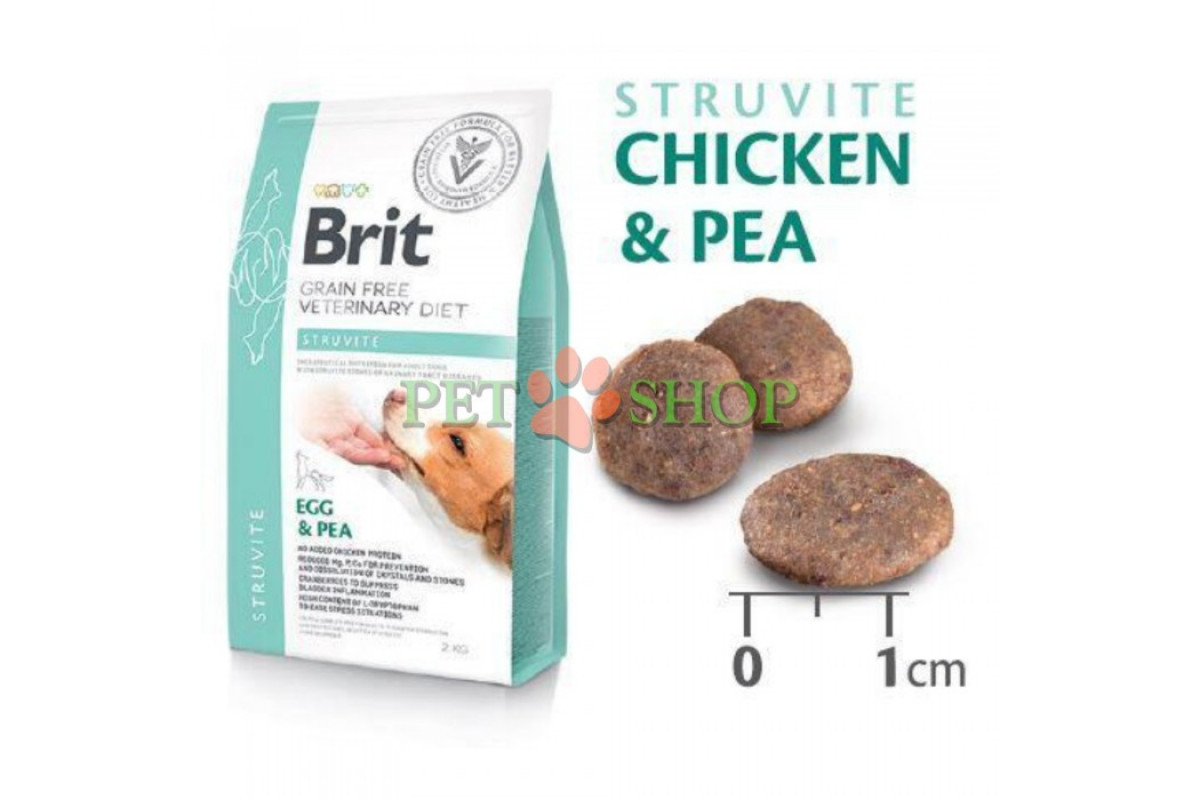 Brit Vet Dog Grain Free Struvite – беззерновая диета при струвитном типе МКБ с яйцами, индейкой, горохом и гречихой. Диетический полнорационный корм для собак – растворение струвитов, снижение риска появления новых струвитов.