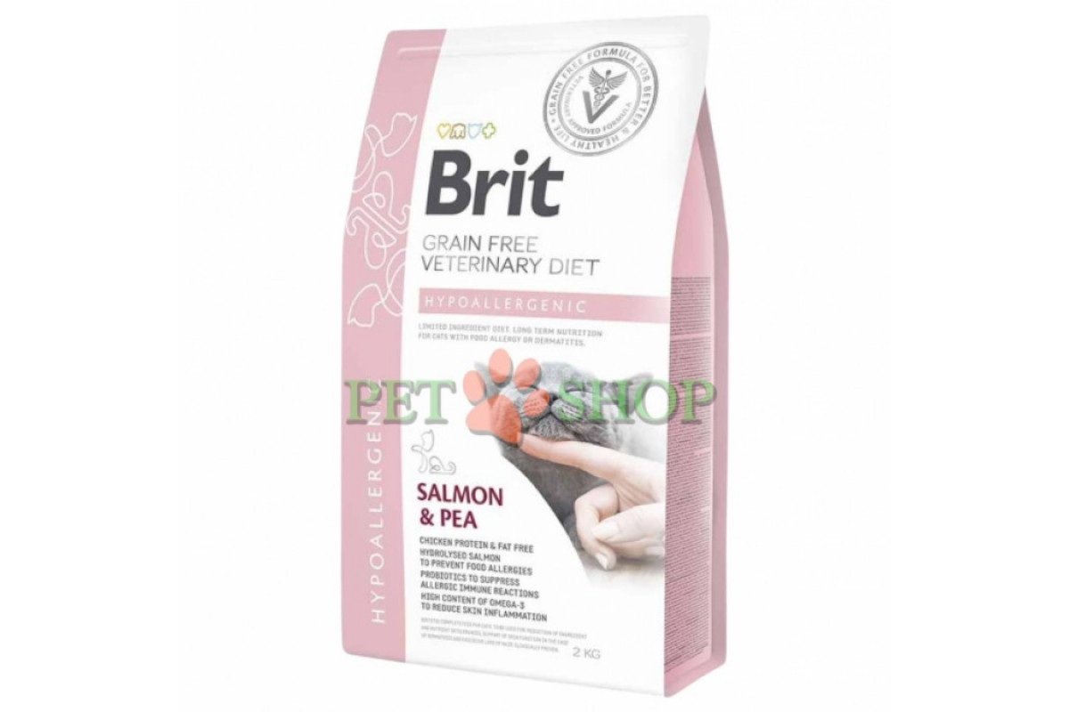 Brit VD Cat Grain free Hypoallergenic Salmon & Pea — лечебный сухой беззерновой гипоаллергенный корм для взрослых кошек всех пород.