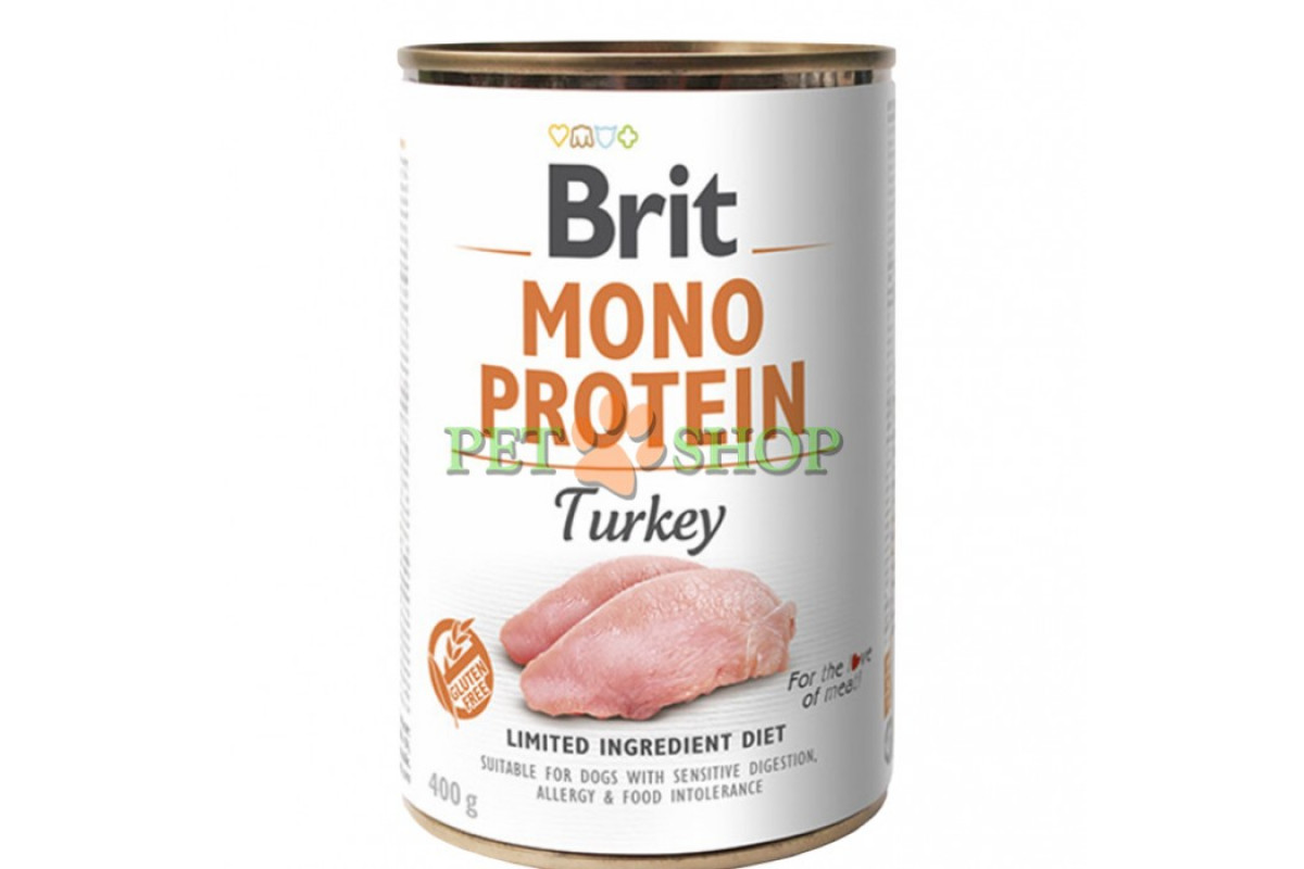 Монопротеиновая консерва с индейкой для собак. Рецептура с содержанием одного протеина рекомендуется для снижения риска развития аллергии и пищевой непереносимости. Комплексный корм для собак.