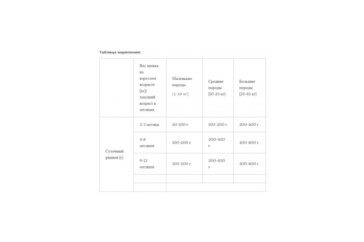 Инструкции по кормлению: Суточный рацион может отличаться в зависимости от активности и условий среды. В случае подачи для повышения разнообразия и аппетита не забывайте снизить рекомендуемую норму регулярного кормления вашей собаки. Подавайте при комнатной температуре. Обеспечьте вашей собаке доступ к свежей питьевой воде. Храните в сухом и прохладном месте. После открытия храните в холодильнике.