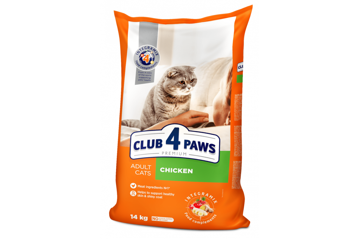 CLUB 4 PAWS Premium «Chicken» Complete dry pet food for adult cats 14 кг