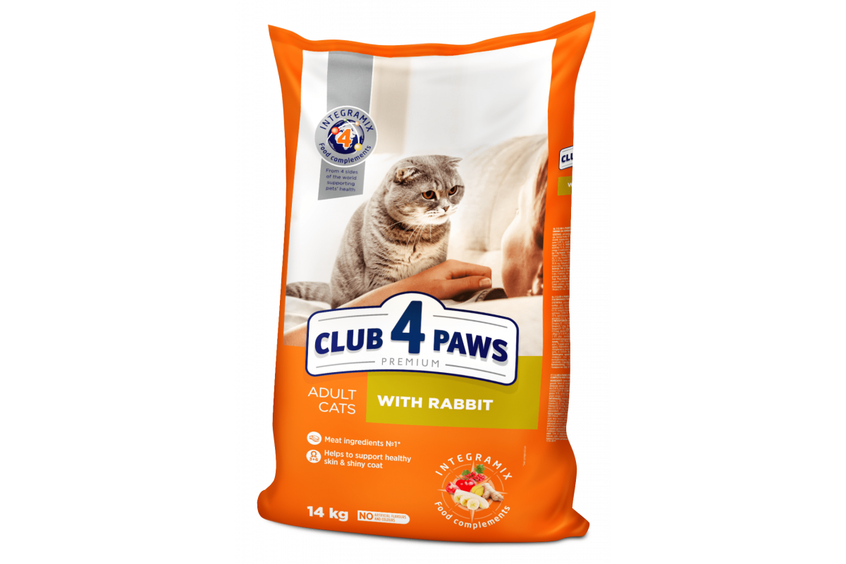 CLUB 4 PAWS Premium «With rabbit». Complete dry pet food for adult cats 14 кг