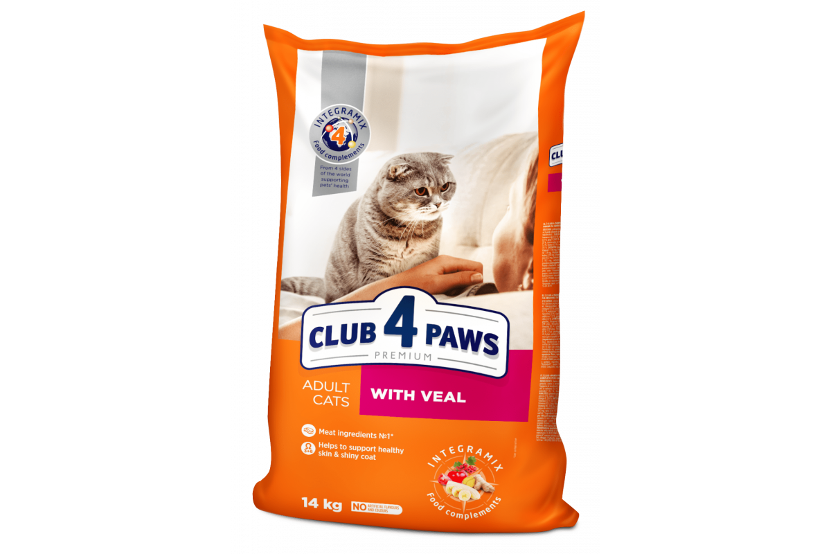 CLUB 4 PAWS Premium «With veal». сomplete dry pet food for adult cats 14 кг