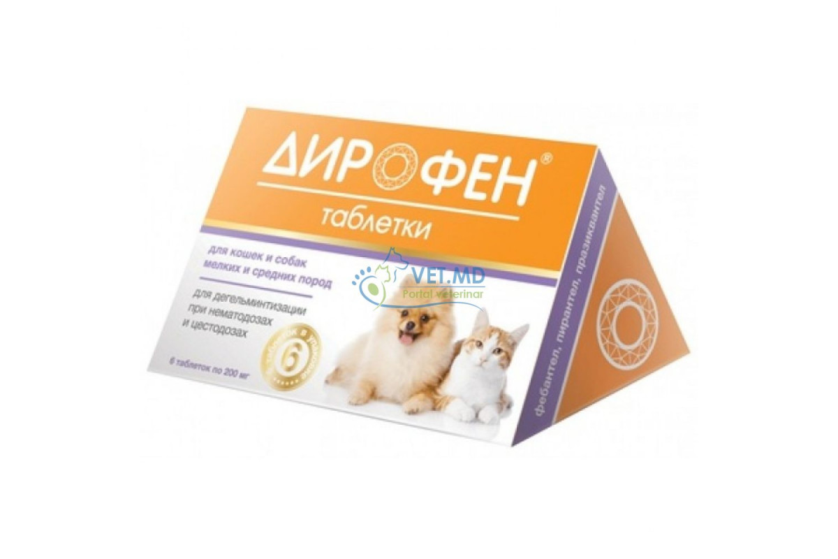 Дирофен для взрослых собак и кошек, 6 таблеток