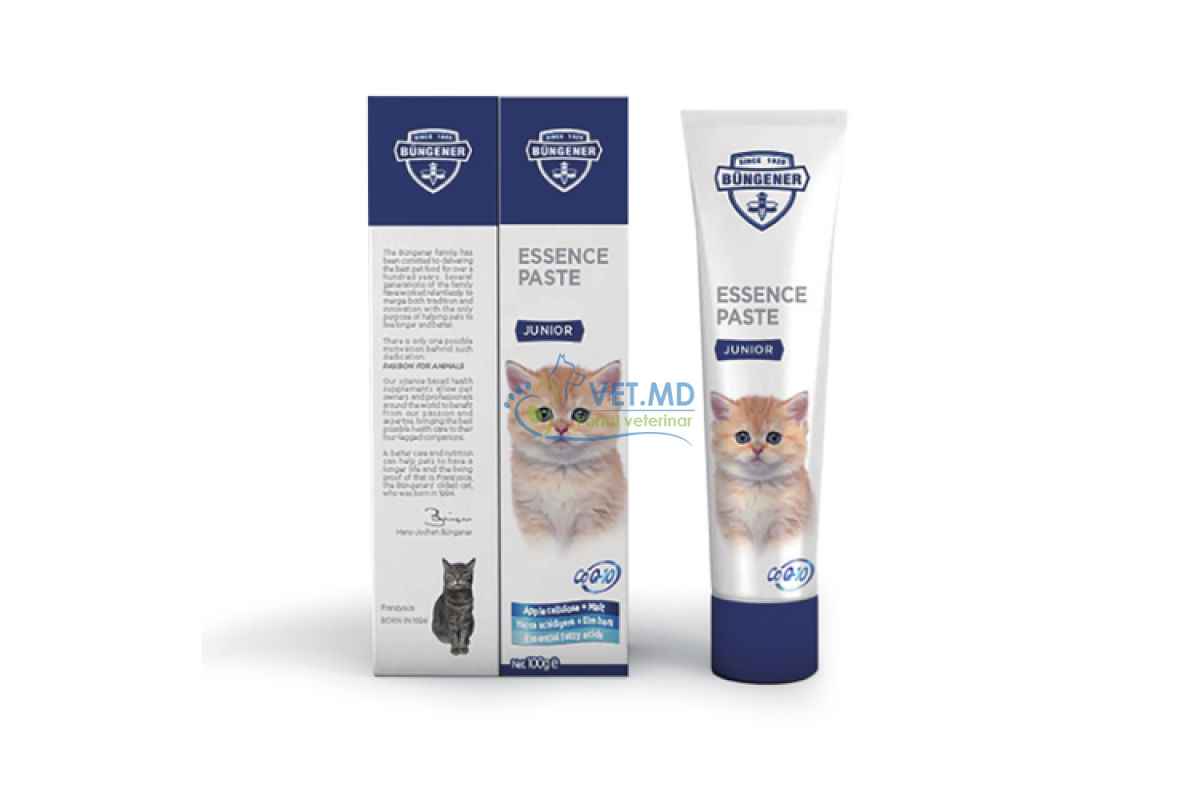 Наша серия товаров для ежедневного ухода предлагает ВСЕ-В-ОДНОМ решении наиболее распространенных проблем со здоровьем, с которыми кошки сталкиваются на разных этапах жизни. От рождения до совершеннолетия крайне важно обеспечить правильное развитие иммунной системы, оптимальный рост и правильное развитие нервной системы и функции сердца. Наша ESSENCE PASTE JUNIOR содержит хондроитин, глюкозамин, папайю, ананас, L-триптофан, таурин и другие активные ингредиенты. Коэнзим Q10 помогает улучшить усвоение активных ингредиентов.