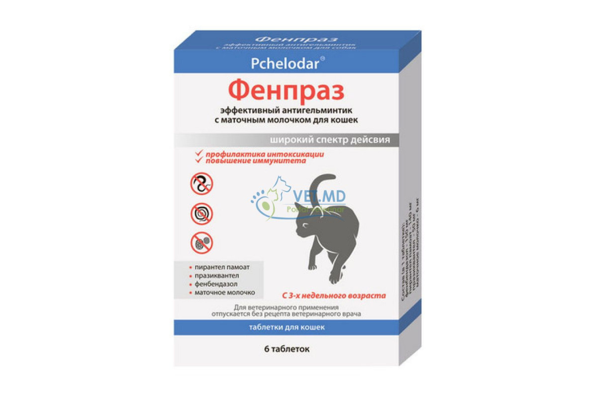 Фенпраз – универсальный антигельминтик против цестодозов и нематодозов собак и кошек. Фенпраз обладает широким спектром антигельминтного действия на все стадии развития круглых и ленточных червей.