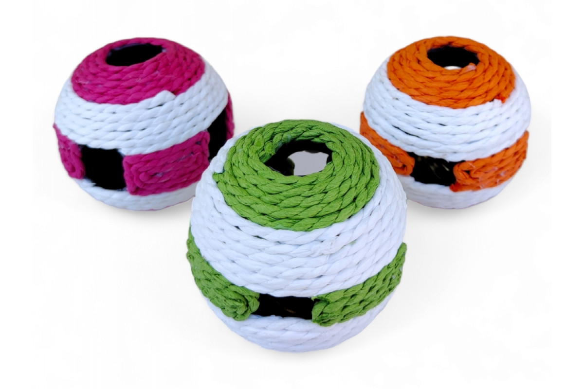 Игрушка веревочная Мяч сизаль с колокольчиком, (41389)