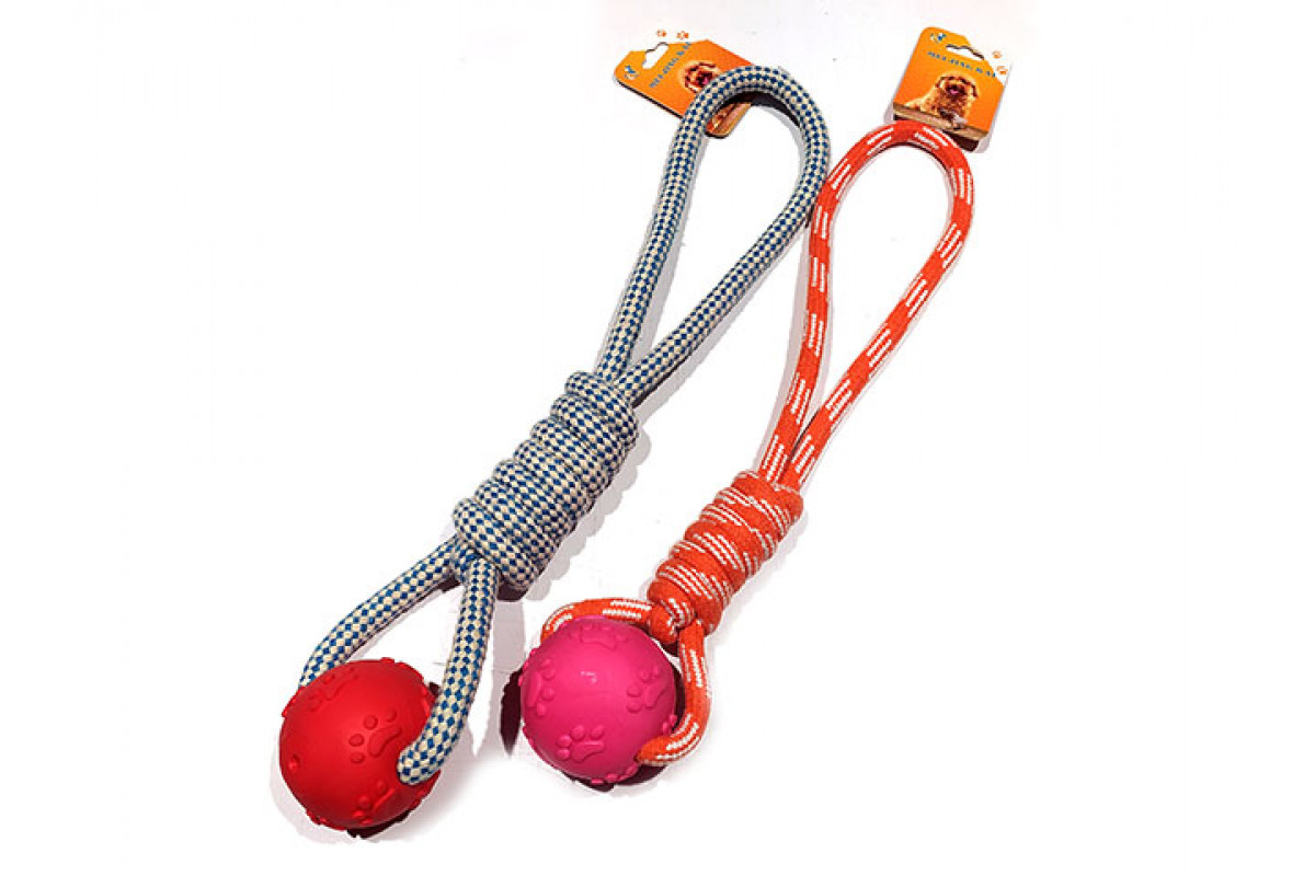 Игрушка веревочная, с мячом, с пищалкой, 40см, разные цвета, (41196)