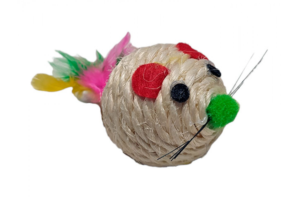 Игрушка веревочная с перьями Мордочка мал, (41076)
