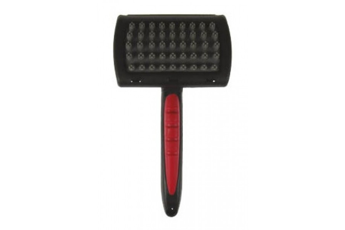 Практичная щетка с прочной ручкой для ежедневной чистки. Он удаляет мертвые волосы и делает шерсть мягкой и блестящей. При этом он обеспечит питомцу приятный легкий массаж.