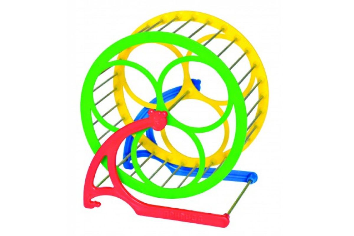 Это не только развлечение, но и возможность поддерживать мышцы в тонусе, нормализовать обмен веществ, удовлетворить естественную потребность в движении. Яркое колесо на стойкой подставке изготовлено из качественной пластмассы, не содержащей токсичных или опасных для животных веществ. Поперечины сделаны из прочной проволоки. Аксессуар легко моется, прост в уходе и придаст интерьеру клетки праздничного вида. По желанию колесо можно установить вне клетки, но не следует оставлять в нем зверька без присмотра.
