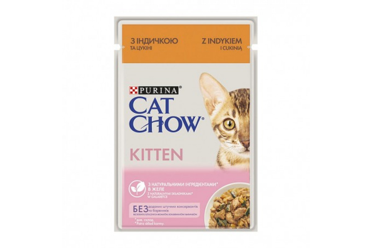 Purina Cat Chow нежные кусочки с индейкой и цукини в желе для котят.