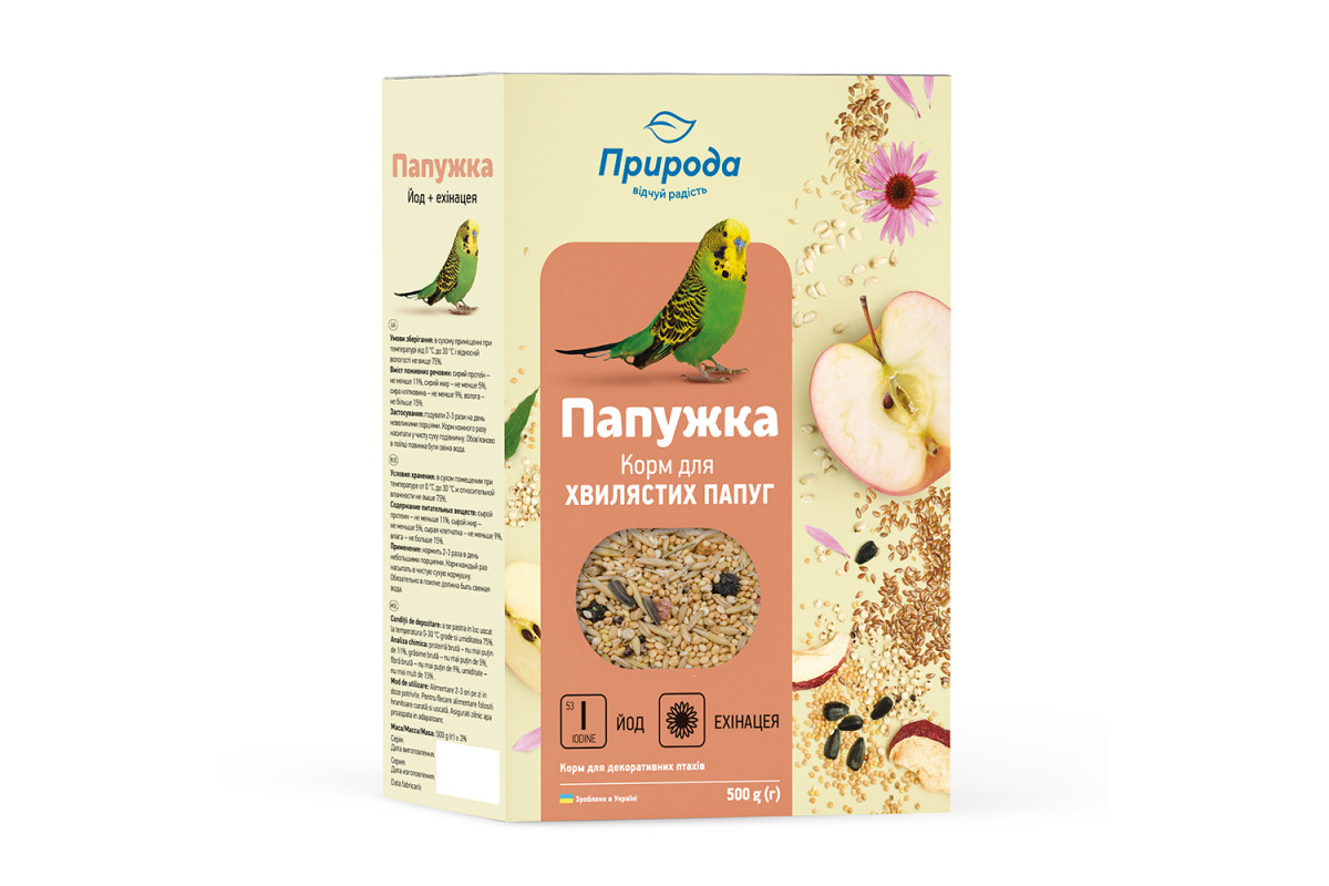 Рецептура корма «Попугайчик. Йод + эхинацея» разработана на основе рекомендаций ведущих специалистов по разведению и содержанию декоративных птиц.