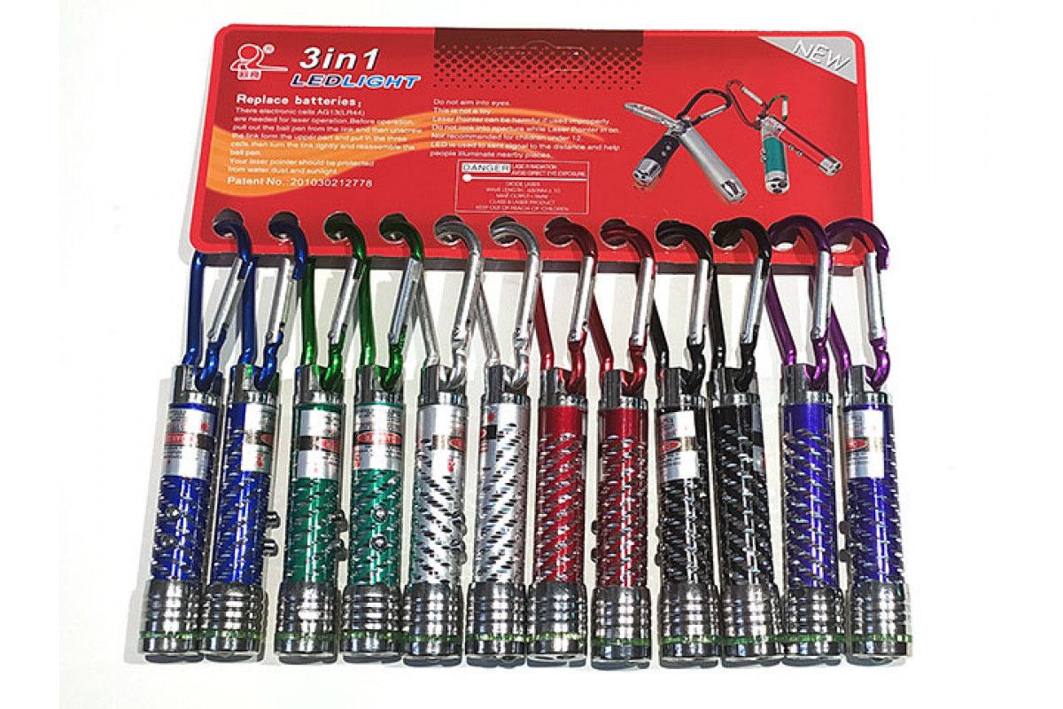 Лазерная указка с фонариком, разные цвета 12шт, (41094)