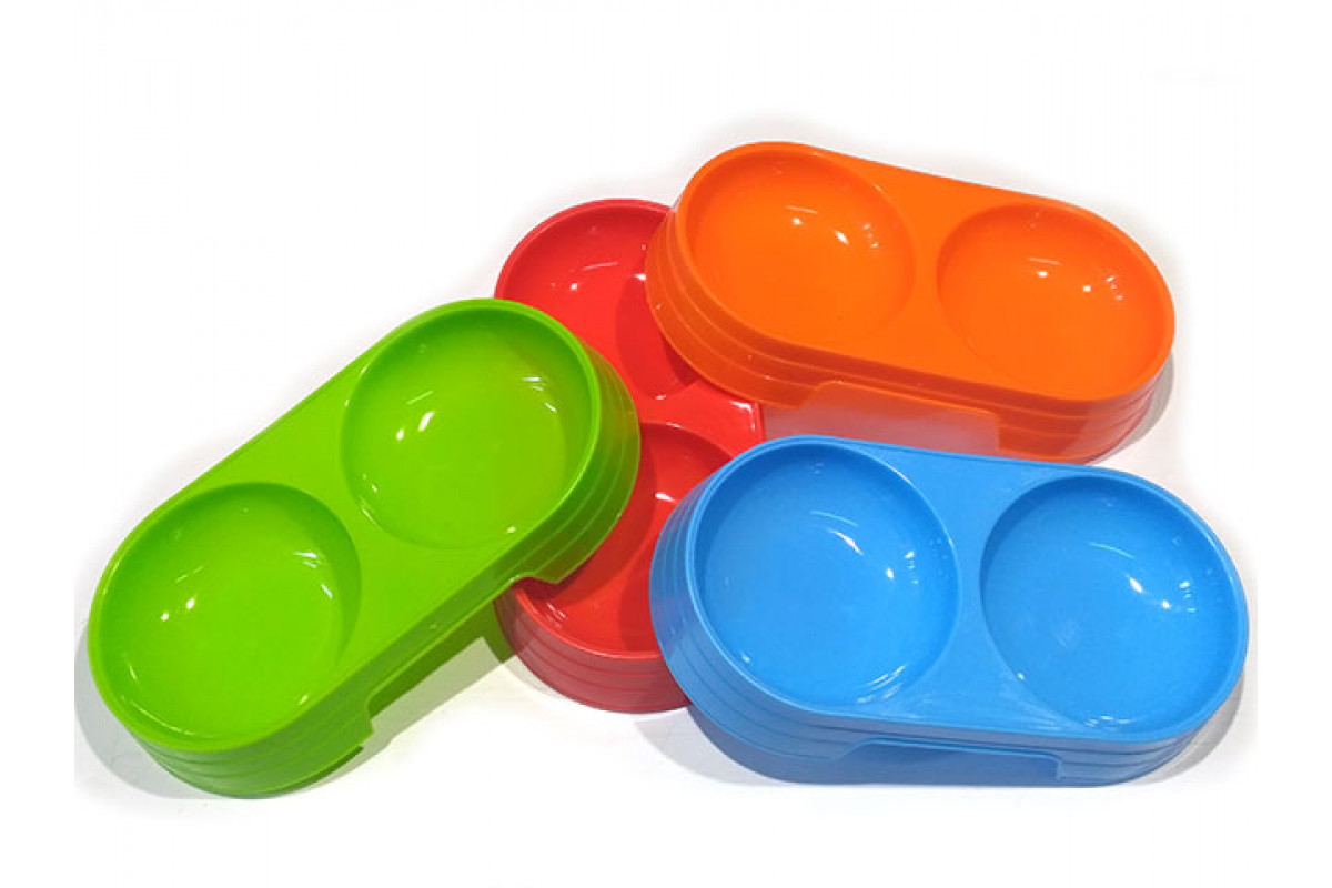 Миска двойная цветная большая нов для кошек и собак, 26,5см*14см*4,5см, разные цвета, (43200)