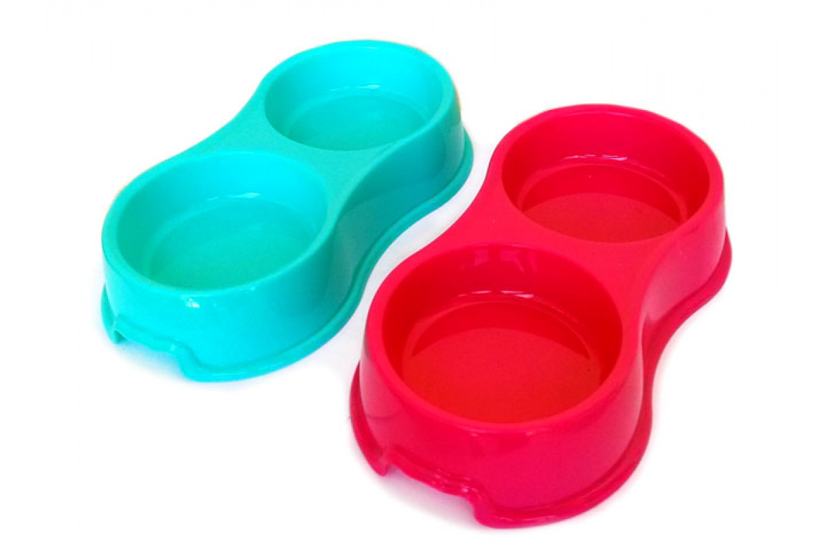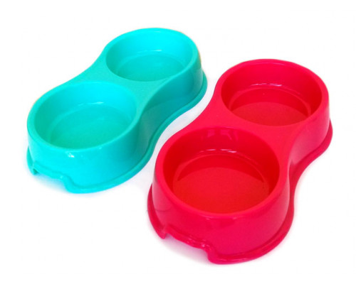 Миска двойная цветная большая стар для кошек и собак, 27,2см*14,5см*5,4см, разные цвета, (43163)