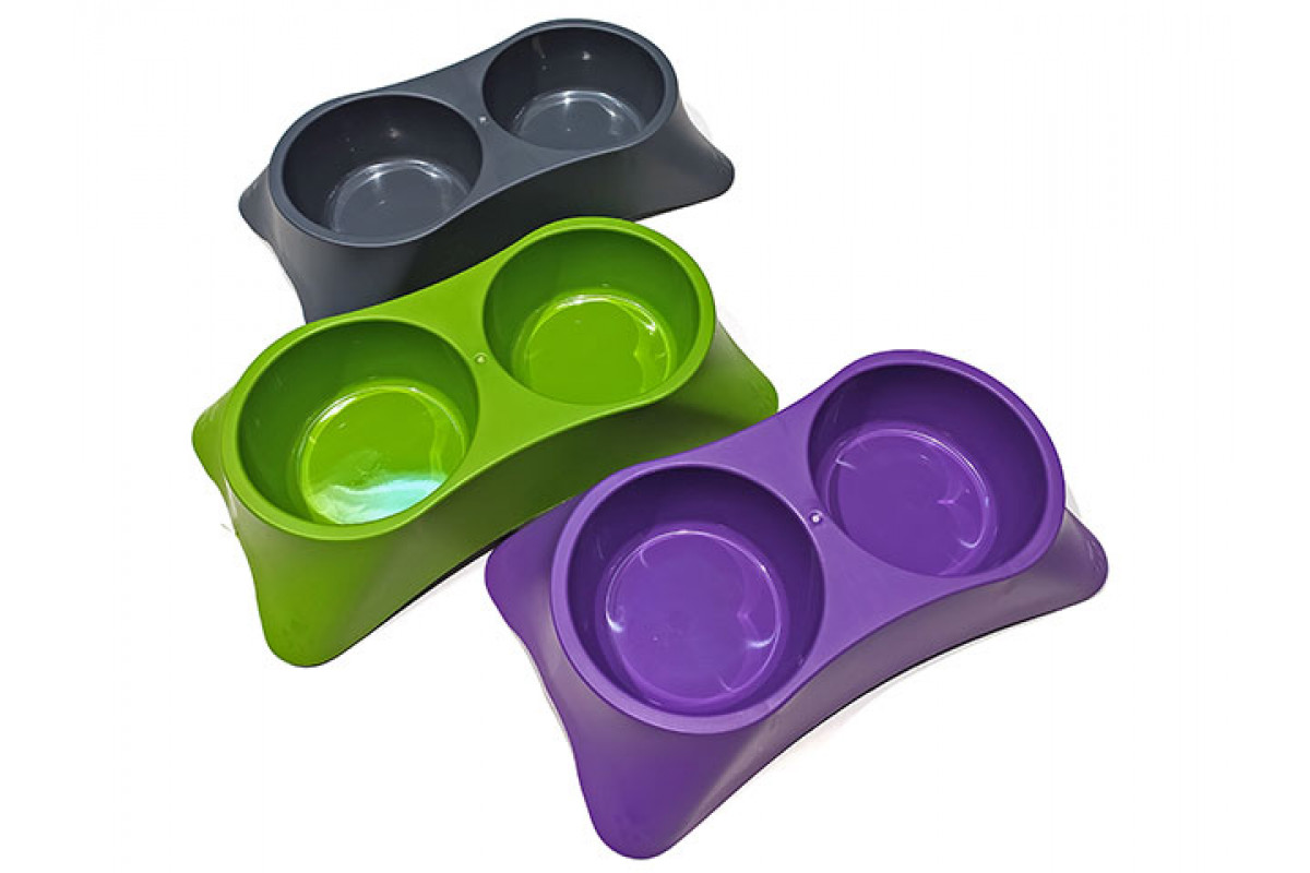Миска пласт, разные цв. двойная,22,5*14,5*5см, 2*250мл, Турция, (43330)