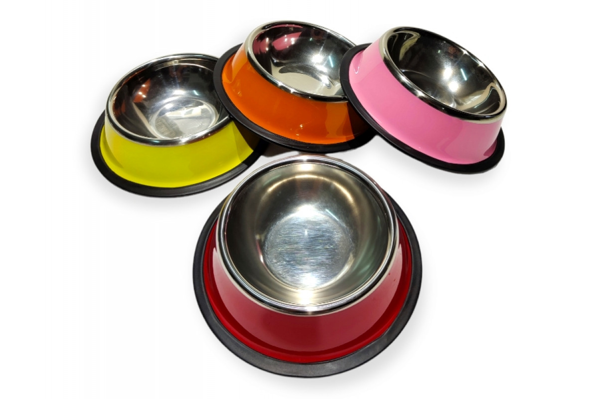 Миски металл с резиновым основанием, цветные, 18см, №2, (43399)