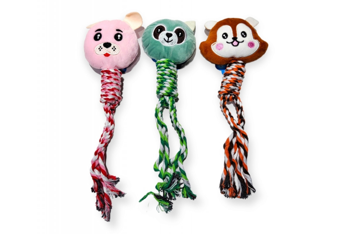 Мягкая игрушка, плюш + веревка, с пищалкой, разн цв, 30*10см, (41320)