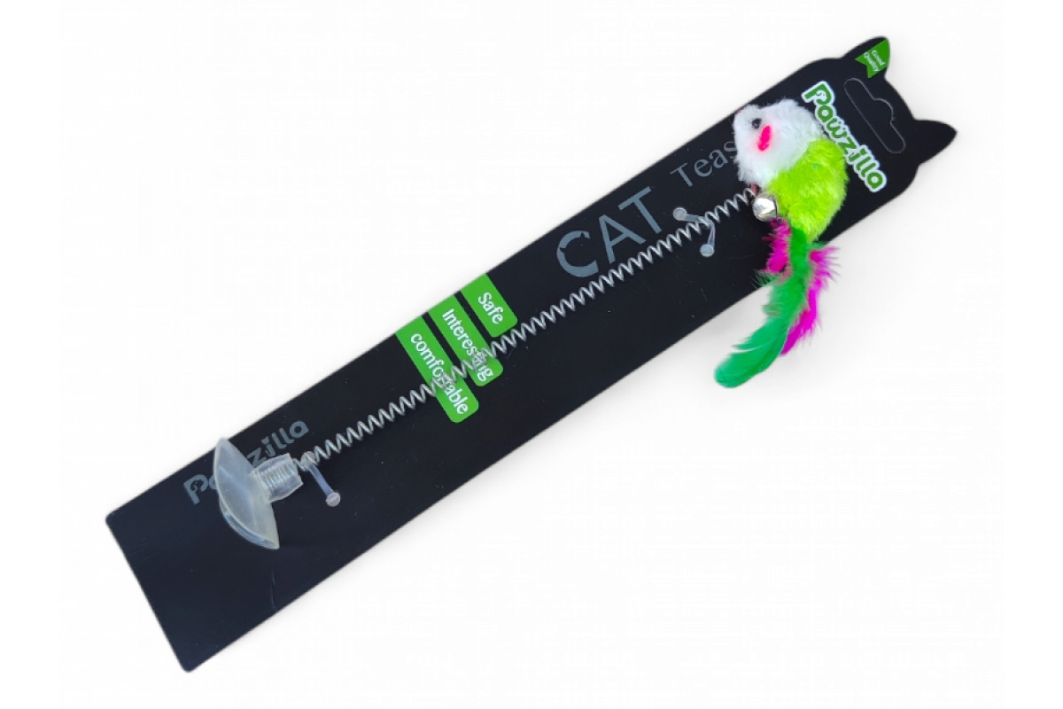 Мышь с перьями, на пружине с присоской, 22см, на блистере, (41434)