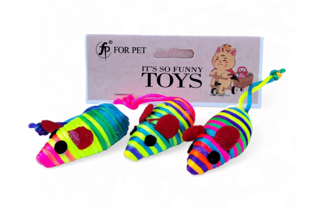 Мышки, радуга, веревочные, 4см, уп. 3шт, (41358)