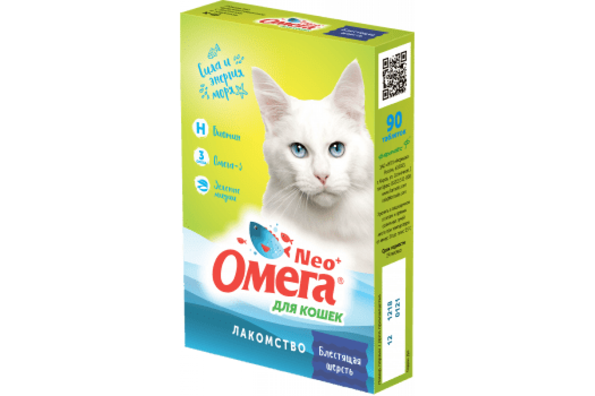 Омега Neo — вкусное и полезное лакомство для поощрения, баловства и поддержания естественной красоты шерсти кошек.