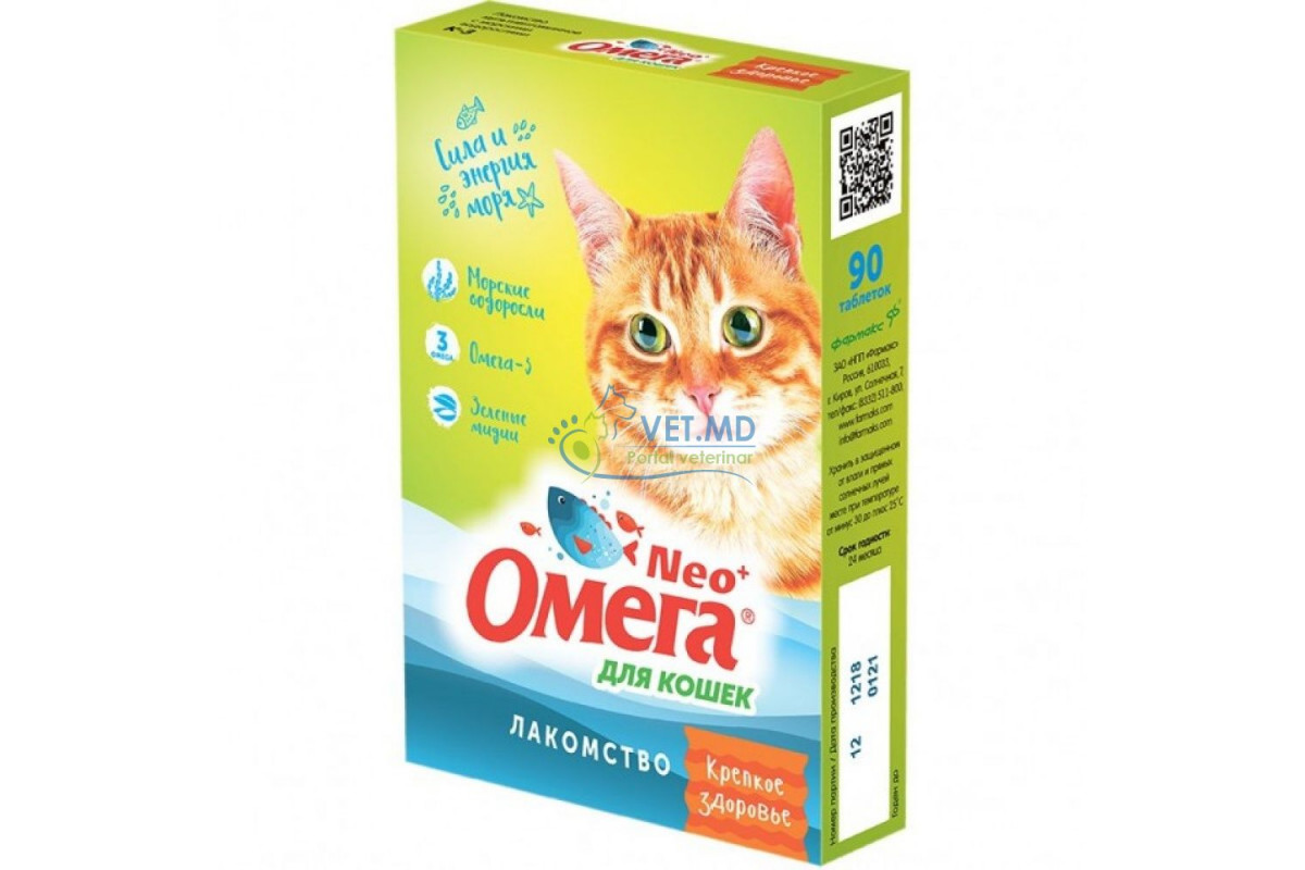 Предназначено для поддержания здорового и активного образа жизни поощрения, баловства и дрессировки кошек. Омега Neo+ единственное отечественное лакомство, содержащее в составе новозеландские зеленые мидии, морские водоросли и Омега-3 кислоты. Морские водоросли повышают активность иммунной системы. Новозеландские зеленые мидии укрепляют хрящевую ткань суставов. Омега-3 кислоты поддерживают иммунитет и улучшают состояние кожи и шерсти. Пивные дрожжи – натуральный источник витаминов группы В.