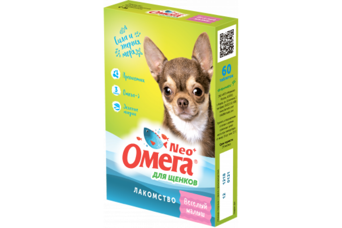 Омега Neo — вкусное и полезное лакомство для поощрения, баловства, дрессировки и поддержания здоровья щенков в период активного роста.