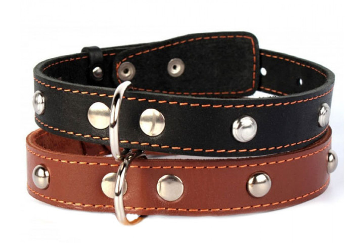 ошейник "Collar" одинарный с украшениями, 25мм* 38-50см, 0223, черный, коричневый, (43071)