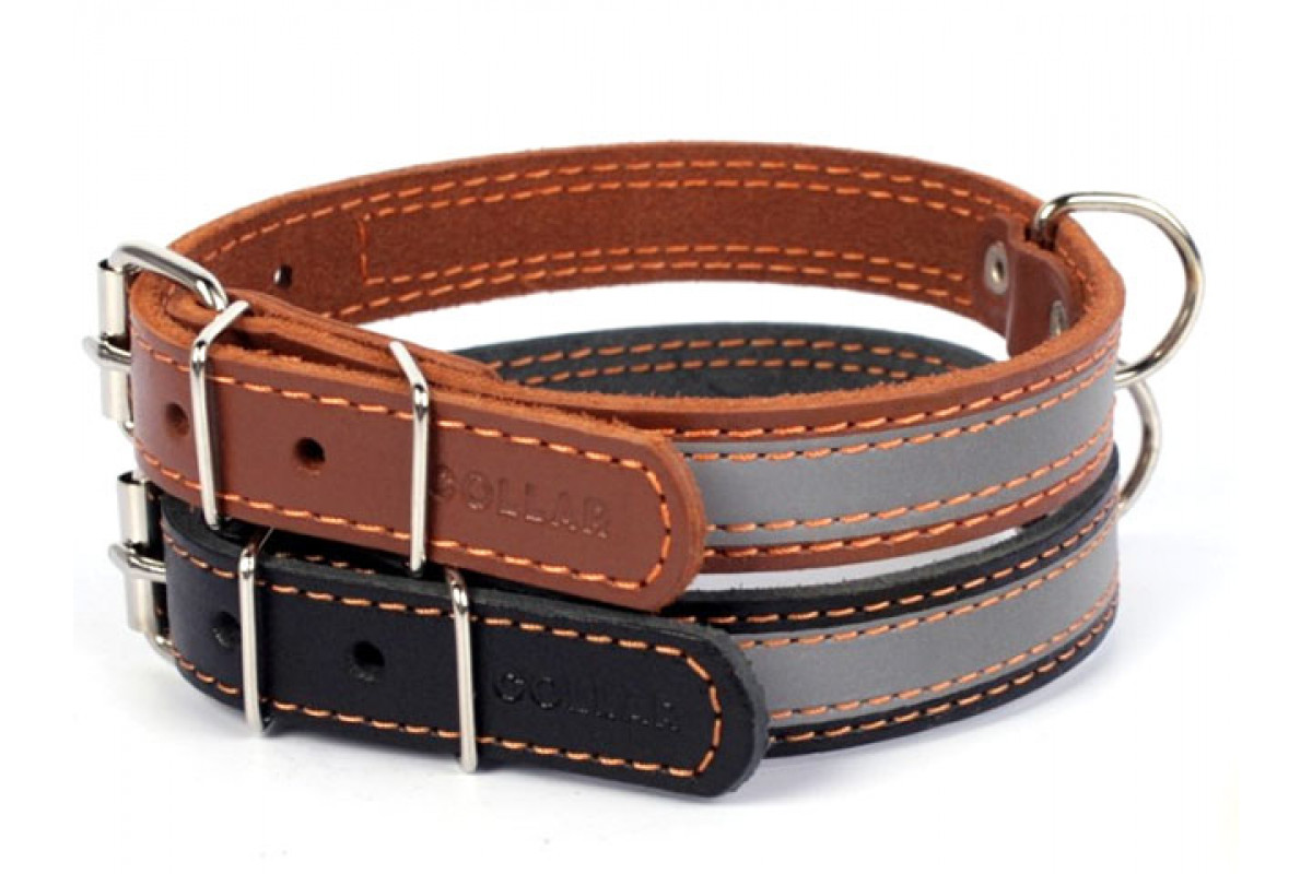 ошейник "Collar" со светоотражающей лентой, 35мм* 48-63см, 0298, черный, коричневый, (43076)
