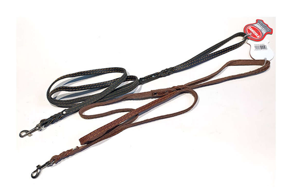 Поводок ремен кожа + заплет строчен, 10мм, черный, коричневый