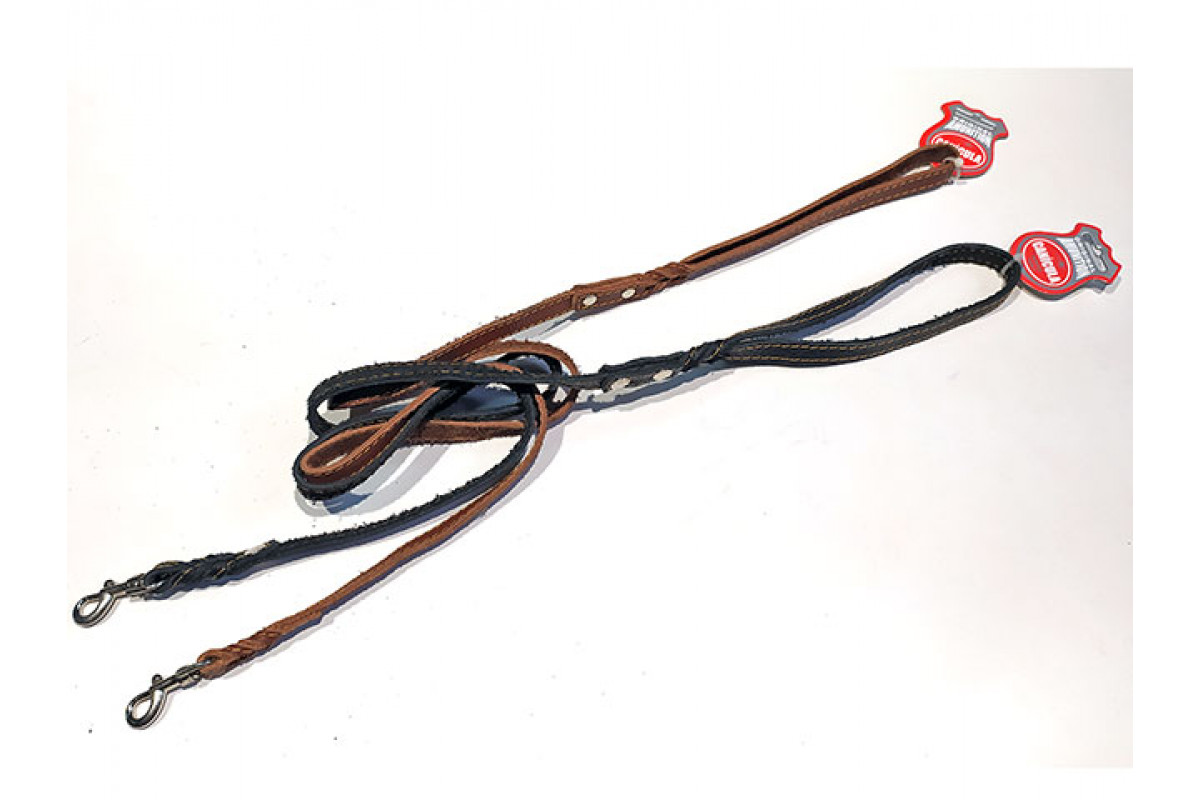Поводок ремен кожа + заплет строчен, 14мм, черный, коричневый