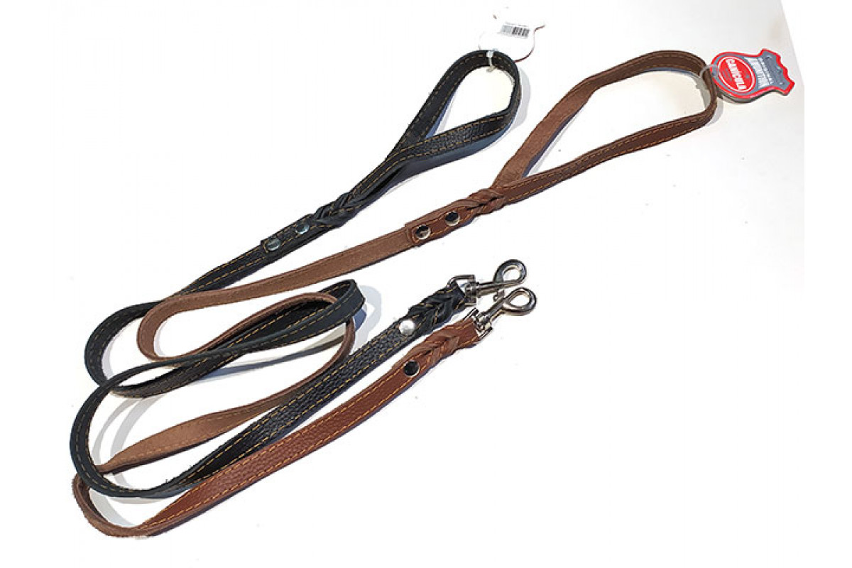 Поводок ремен кожа + заплет строчен, 16мм, черный, коричневый