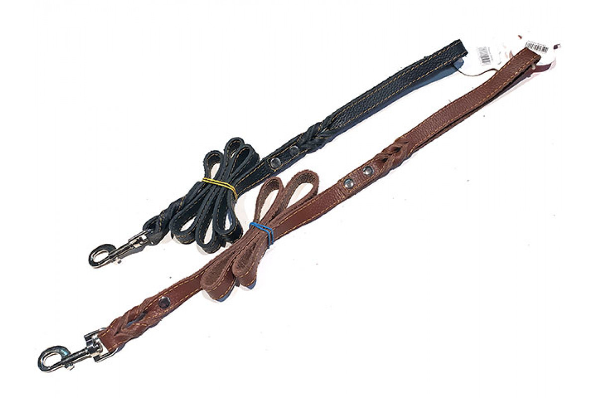 Поводок ремен кожа + заплет строчен, 20мм, черный, коричневый