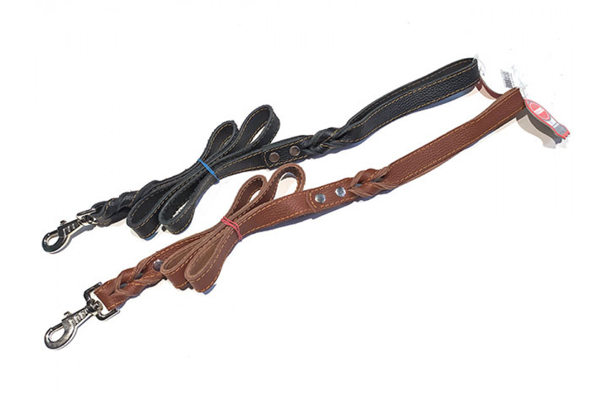 Поводок ремен кожа + заплет строчен, 25мм, черный, коричневый