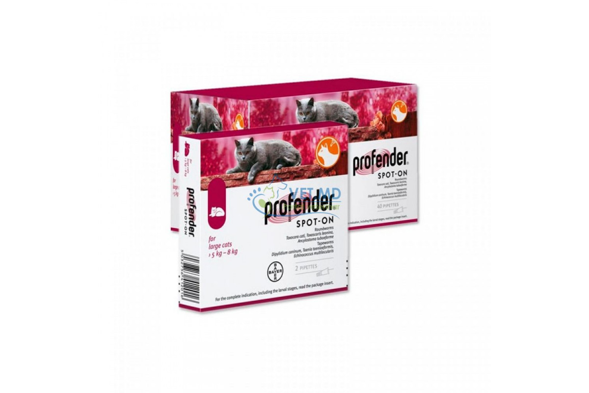 Профендер Спот-он показан для использования у кошек, страдающих или подверженных риску смешанных паразитарных инвазий, вызванных взрослыми и личиночными стадиями нематод видов Toxocara cati, Toxascaris leonina и Ancylostoma tubeeforme, а также против взрослых стадий видов цестод. Dipylidium caninum, Taenia taeniaeformis и Echinococcus multilocularis. Применение каждые 3 месяца защищает кошек от заражения этими паразитами.